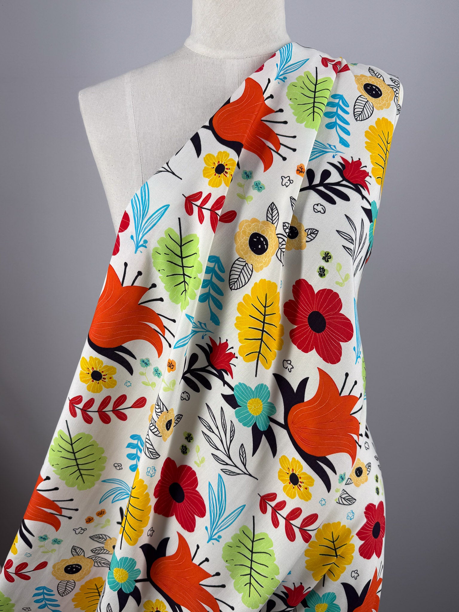 Our Designer Rayon showcases a beautiful and colourful fabric with vibrant prints that can be used for various purposes such as dresses, skirts, blouses, curtains, and more. Our collection showcases a soft, lightweight fabric with a smooth drape and a luxurious feel. Overall, rayon fabric offers both comfort and style, making it a versatile choice for any project.
