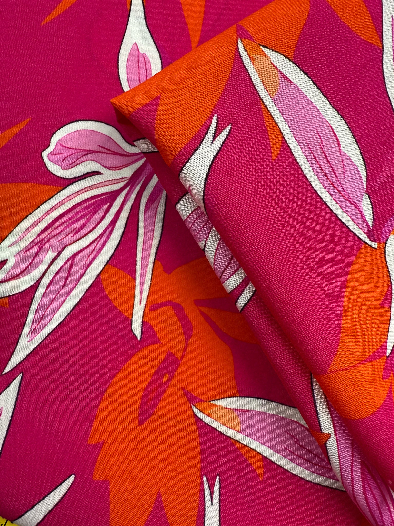 Our Designer Rayon showcases a beautiful and colourful fabric with vibrant prints that can be used for various purposes such as dresses, skirts, blouses, curtains, and more. Our collection showcases a soft, lightweight fabric with a smooth drape and a luxurious feel. Overall, rayon fabric offers both comfort and style, making it a versatile choice for any project.