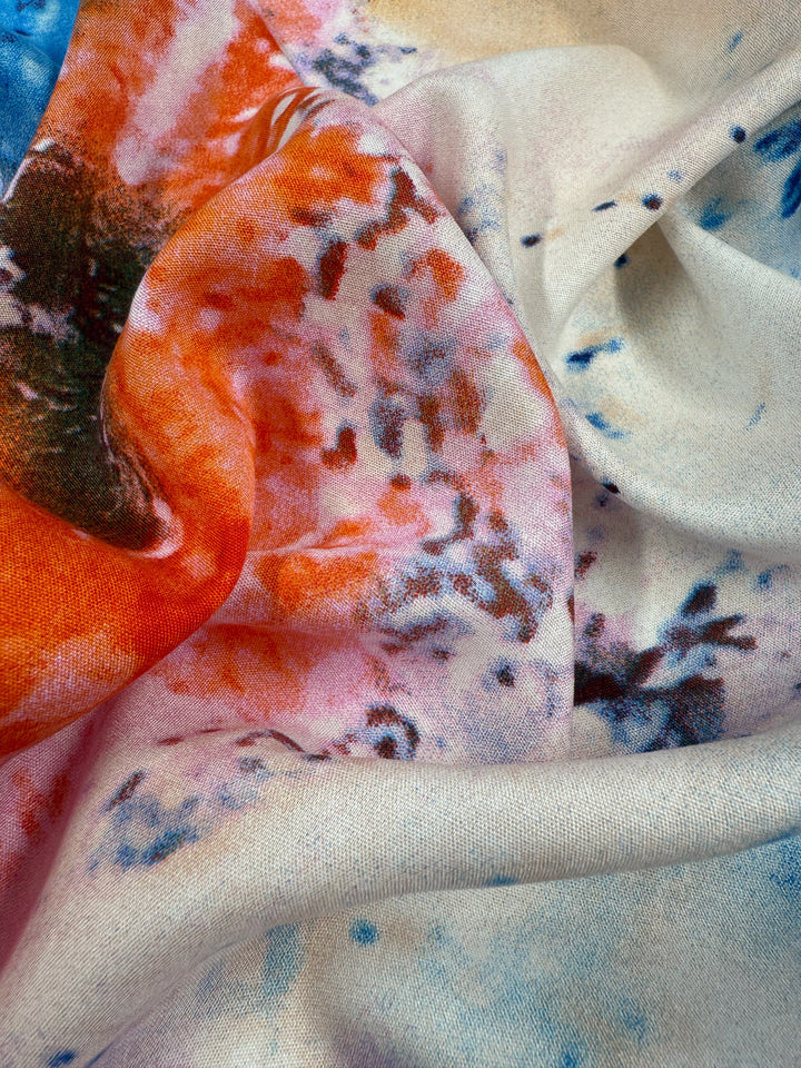 Our Designer Rayon showcases a beautiful and colourful fabric with vibrant prints that can be used for various purposes such as dresses, skirts, blouses, curtains, and more. Overall, rayon fabric offers both comfort and style, making it a versatile choice for any project.