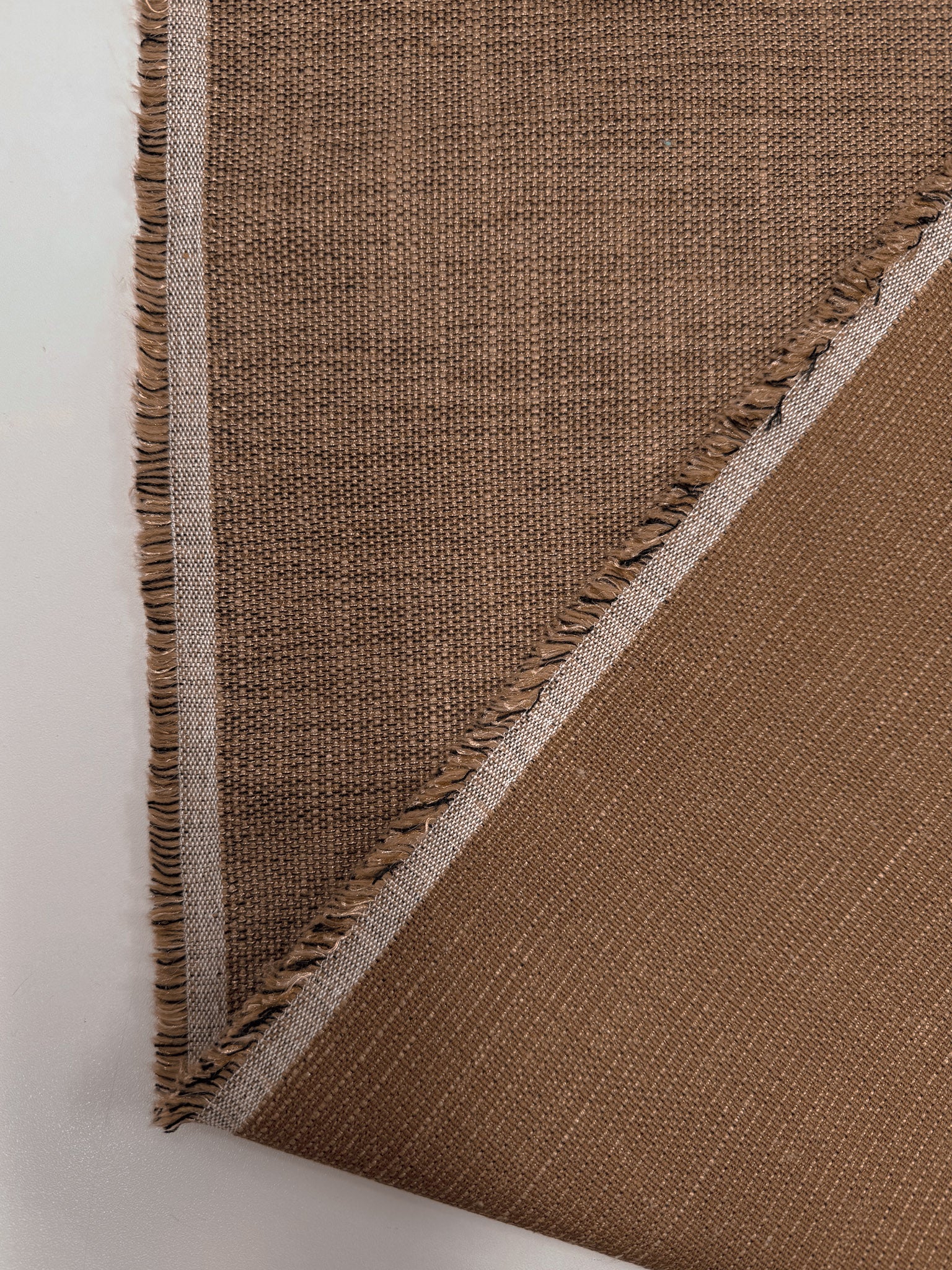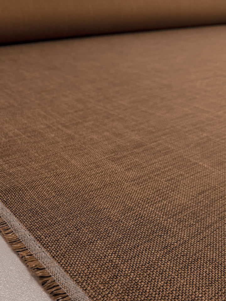 Textured Flat Weave Upholstery Fabric in Camel Brown.