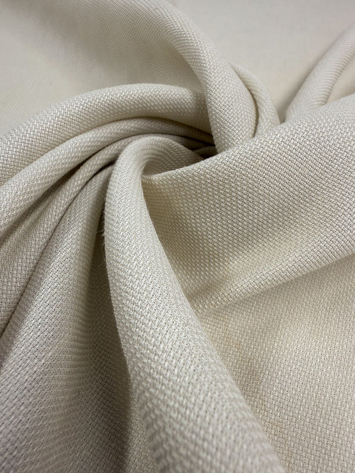 A textured hopsack cream linen with a refined matte finish with a bit of stretch.
