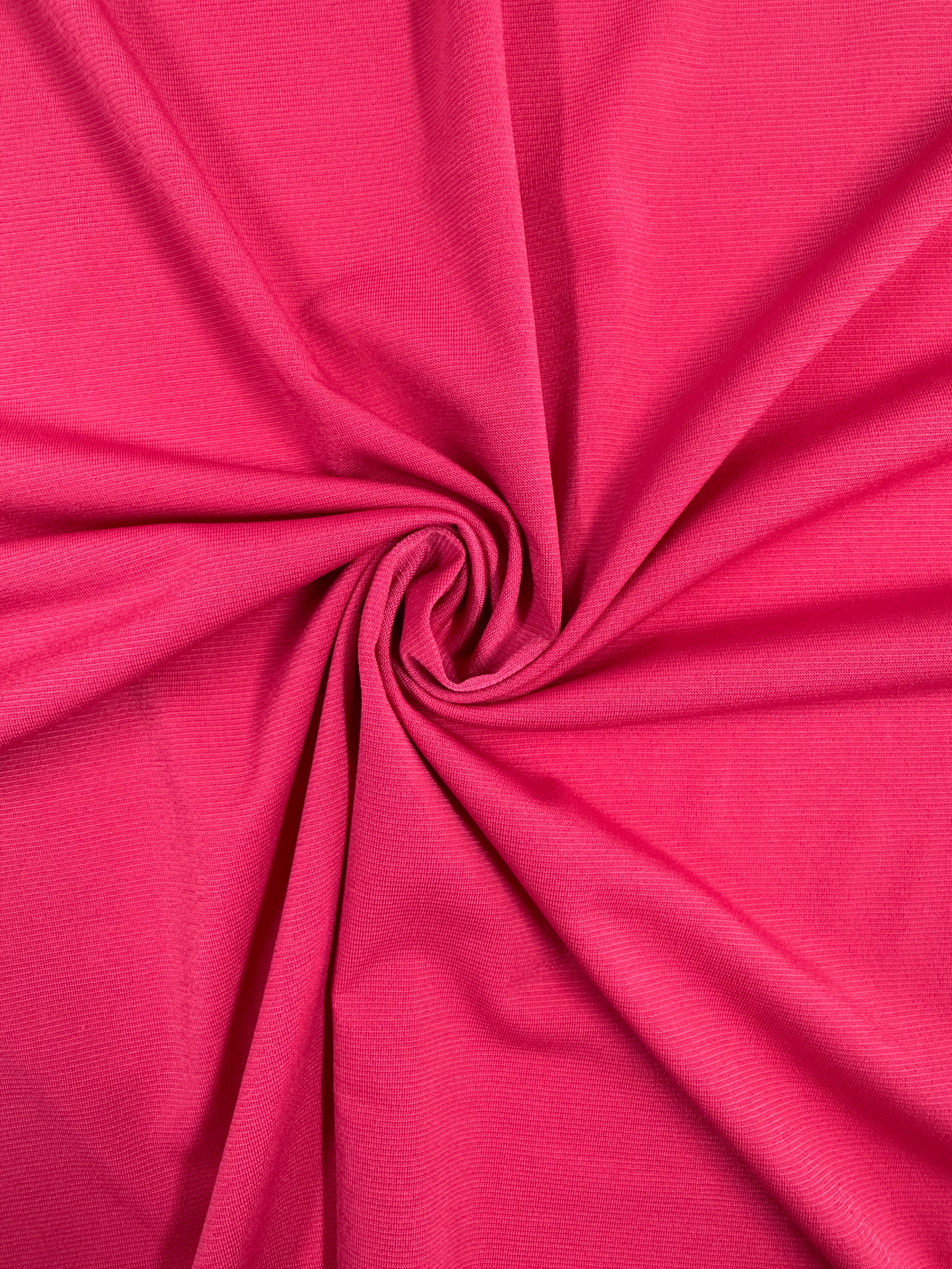 Interlock twist yarn fabric. This opaque fabric has been knit to have great elasticity and a soft touch. This medium weight fabric is the perfect weight for tops, dresses skirts and loose pants.