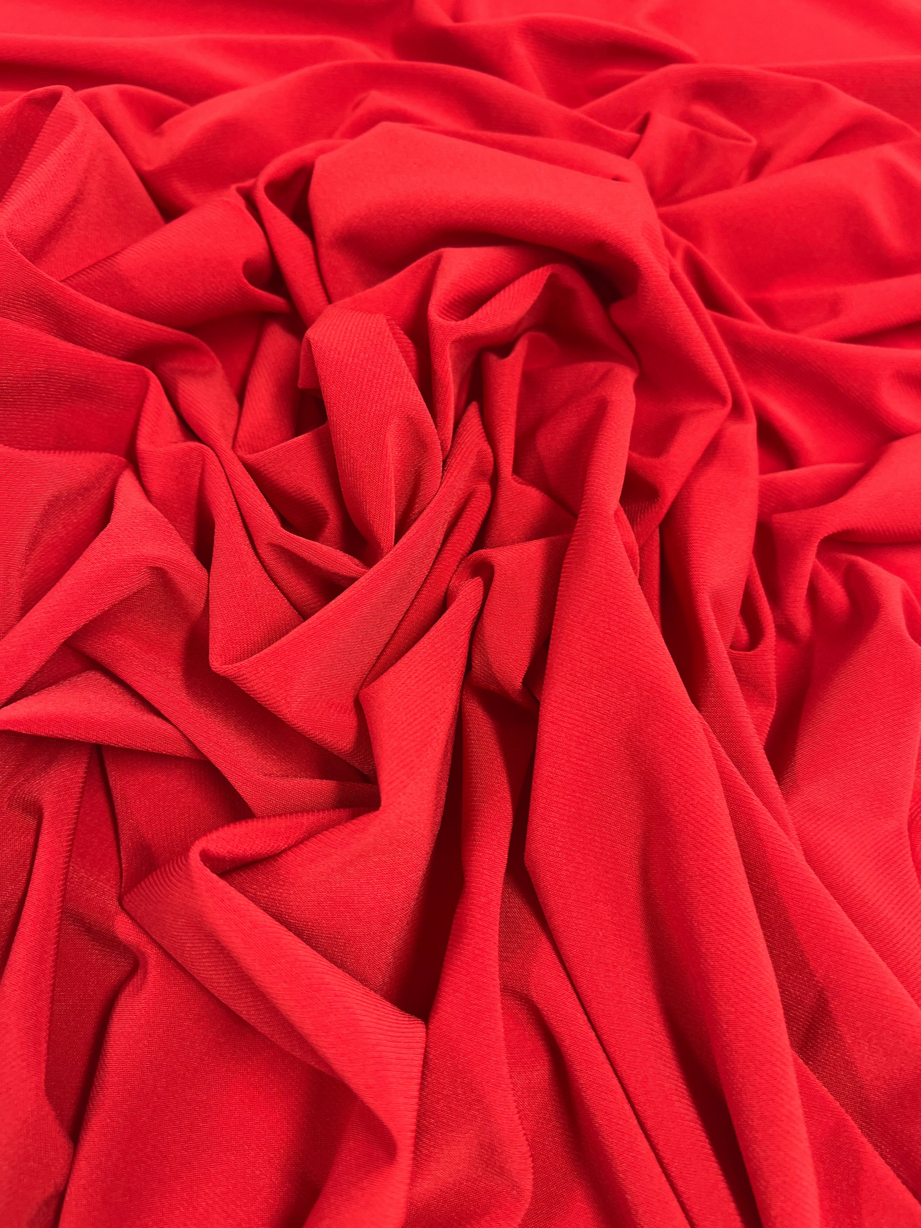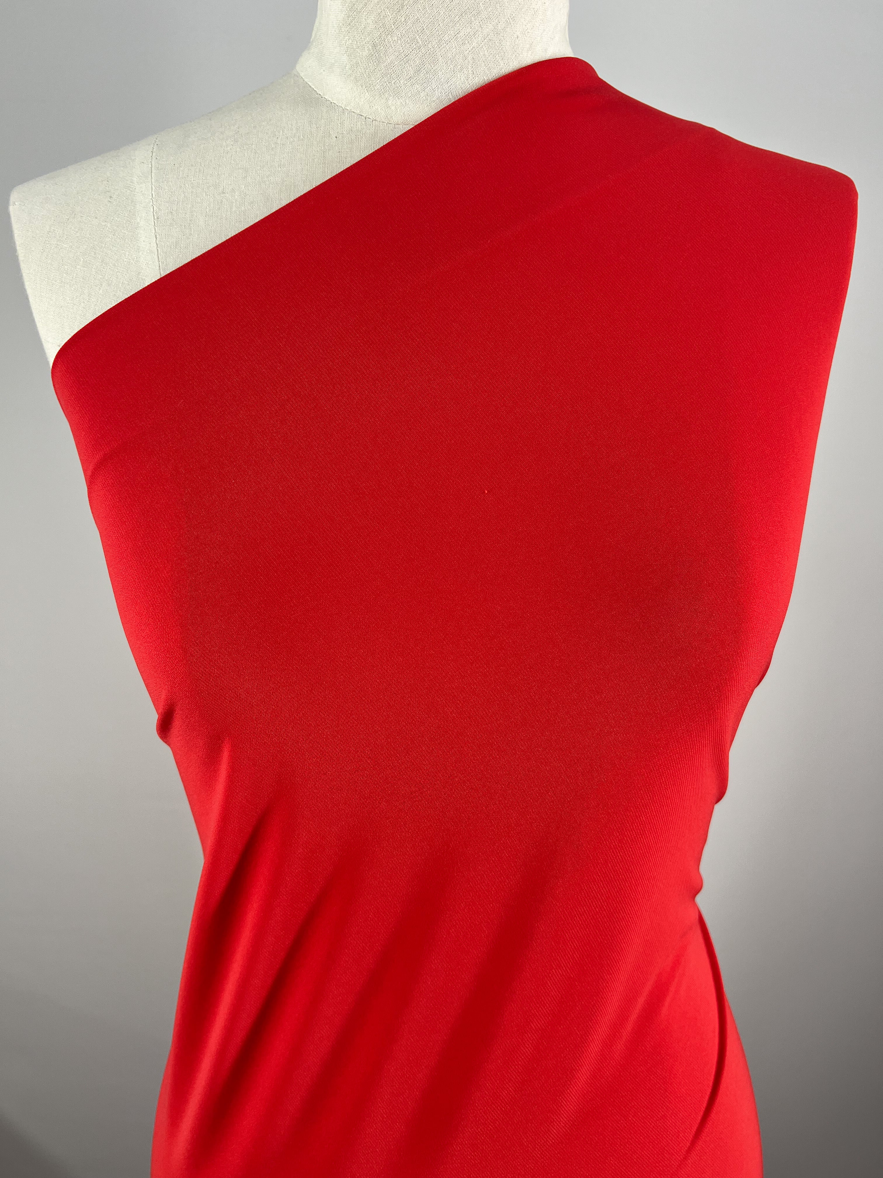 Interlock twist yarn fabric. This opaque fabric has been knit to have great elasticity and a soft touch. This medium weight fabric is the perfect weight for tops, dresses skirts and loose pants.