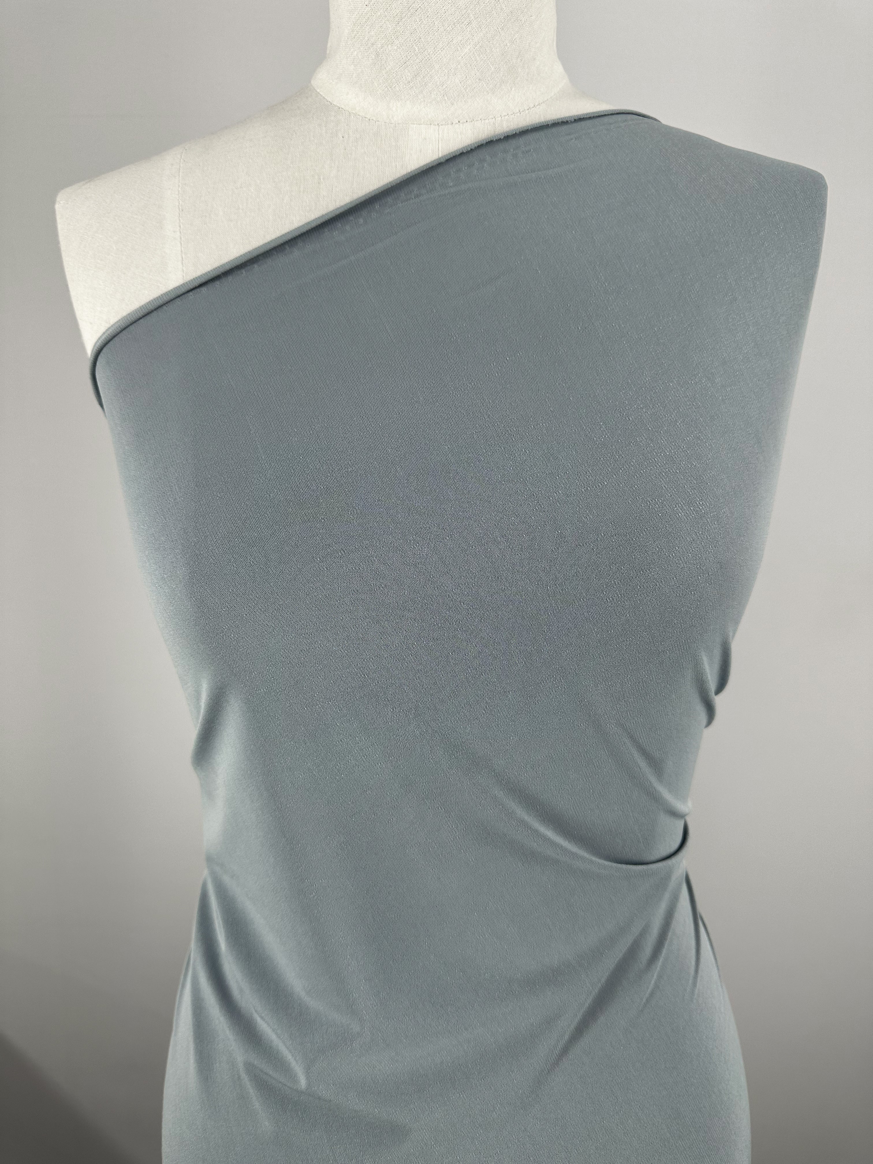 Interlock twist yarn fabric. This opaque fabric has been knit to have great elasticity and a soft touch. This medium weight fabric is the perfect weight for tops, dresses skirts and loose pants.