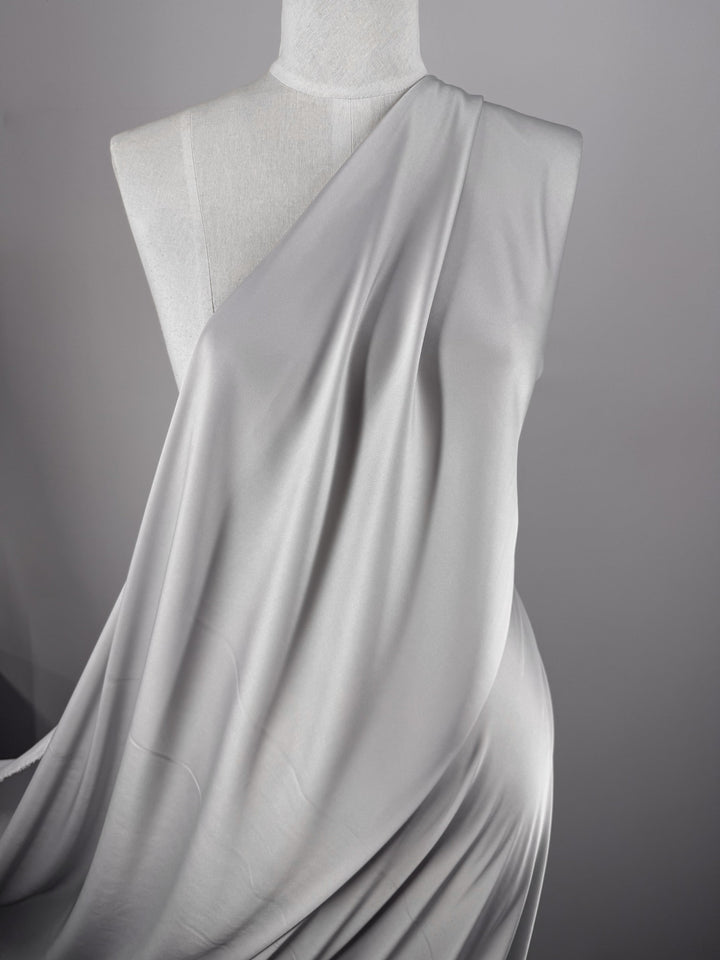 A matte, luxury fabric often used for nightgowns. Satin refers to the weave, not the textile, and most fabrics characterised as satin has a soft, shiny yet matte finish. No spandex however this satin has some give.
