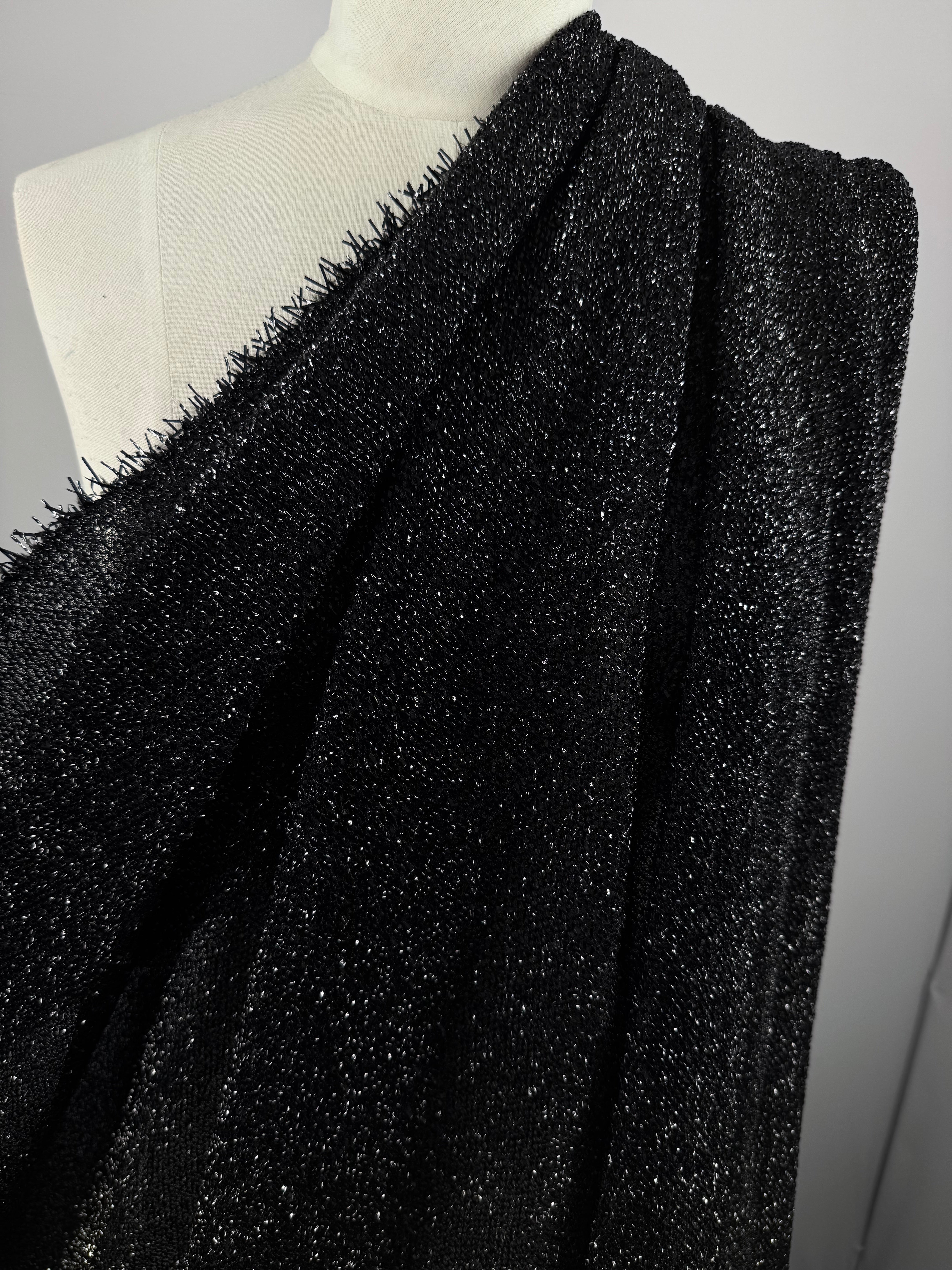 A soft, flexible Lurex Stretch Knit designed with a subtle shimmer and a comfortable stretch. This fabric drapes beautifully, offering a smooth feel with added elasticity that makes it easy to sew and flattering to wear. The knitted structure provides breathability while the metallic thread adds a touch of refinement, making it ideal for both casual and elevated looks. Versatile, durable, and perfect for garments or creative projects that need movement and a hint of shine.