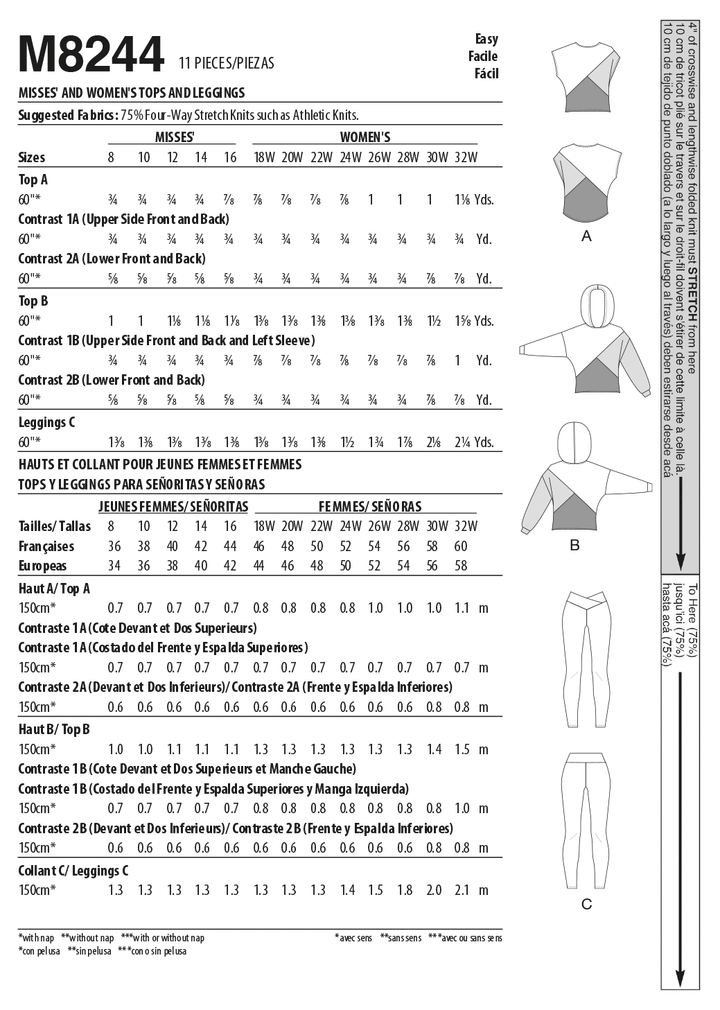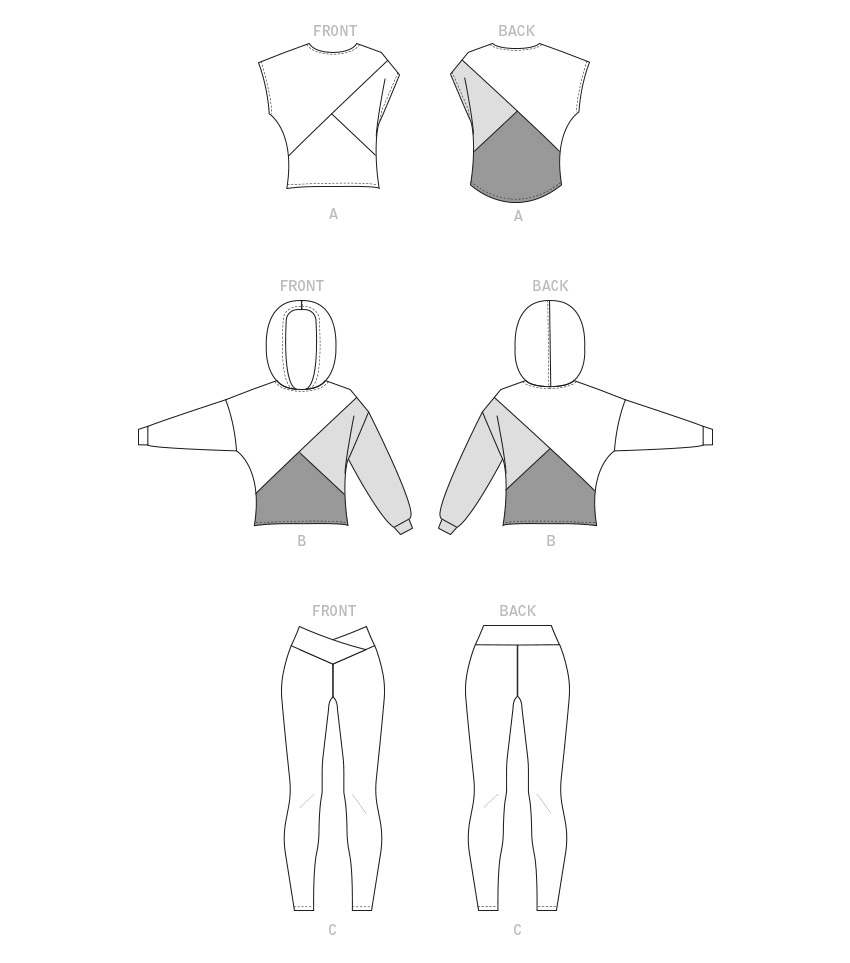Create effortlessly stylish looks with McCall’s Sewing Pattern M8244, designed for Misses’ and Women’s Tops and Leggings. This versatile pattern features a trendy tee and hoodie with drop shoulders and asymmetric seams, perfect for customizing with color blocking or mixing prints. The hoodie includes long sleeves and a banded hem, while the tee boasts a chic hi-low hem for added flair. Complete the set with leggings featuring a flattering crossover V-waist band. Perfect for lounging or casual outings, this pattern helps you craft pieces that are as unique as you are!