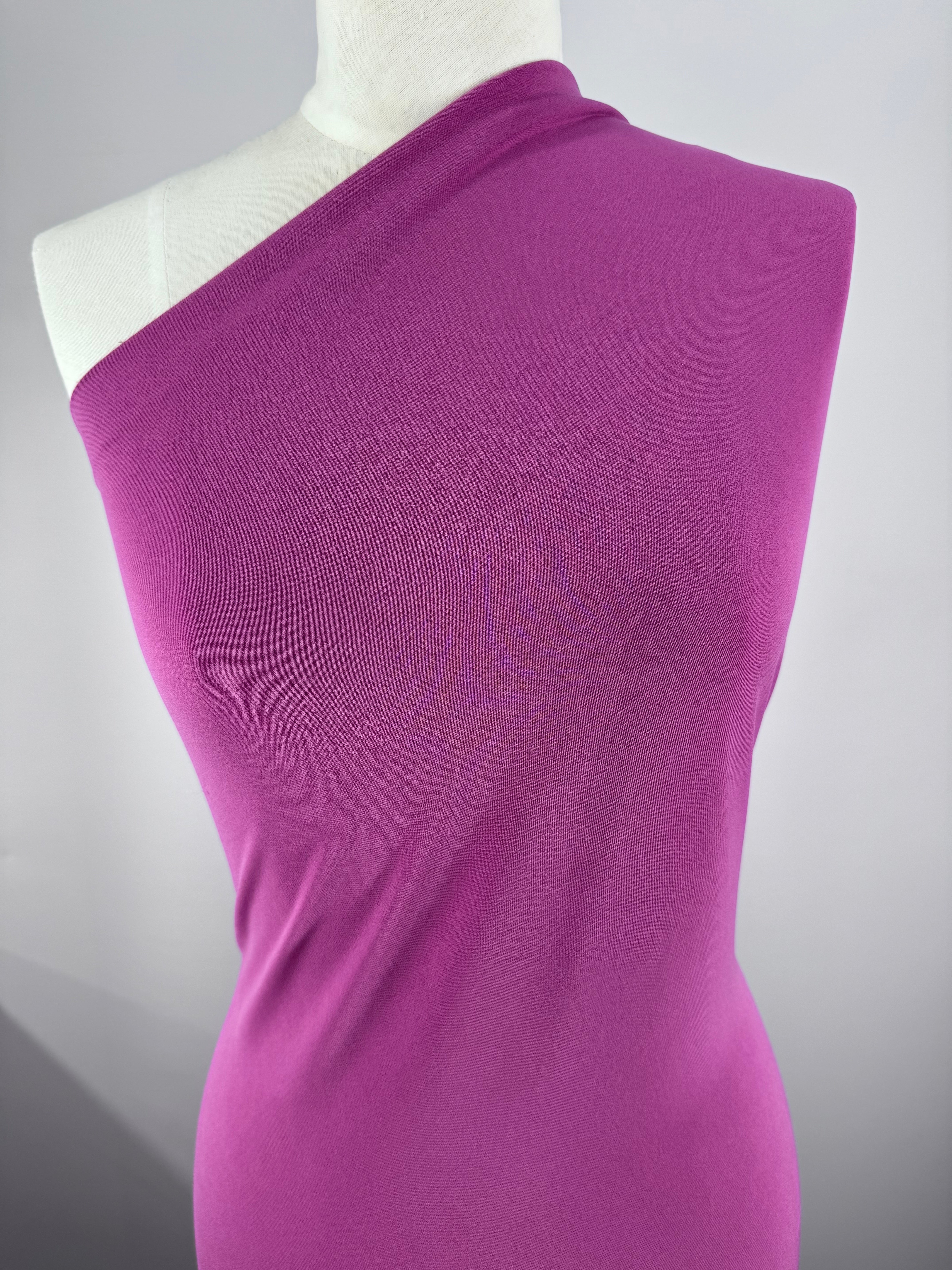 A beautiful plain, Rose Sorbet coloured interlock twist yarn fabric. This opaque fabric has been knit to have great elasticity and a soft touch. This medium weight fabric is the perfect weight for tops, dresses skirts and loose pants.