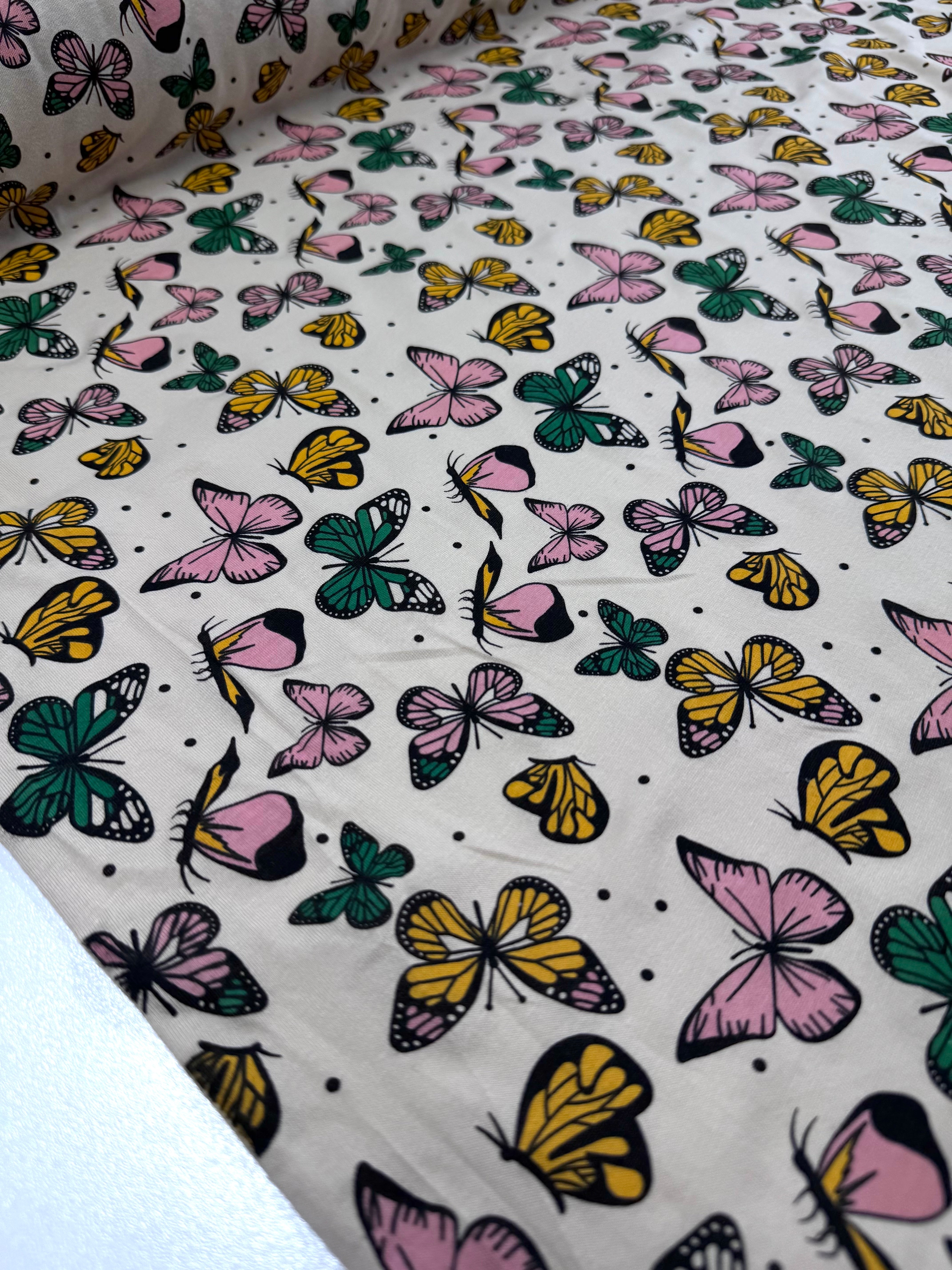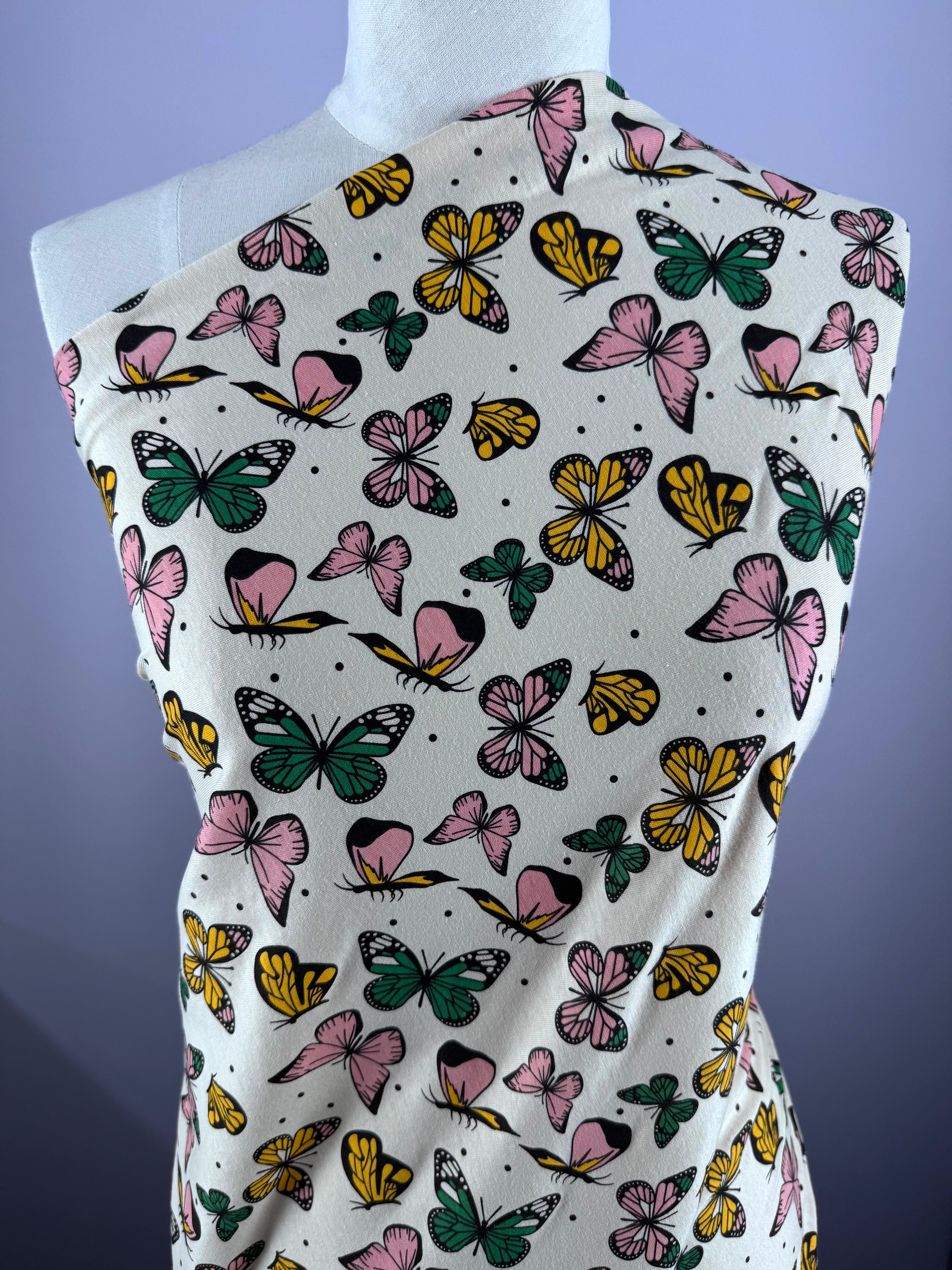 Our Printed Poly/ Cotton Jersey has a two-way stretch and comes in a variety of beautiful prints! Printed Jersey is a medium-weight fabric, has good durability and stretch, and washes well. Our Lycras are perfect for making tops, dresses, skirts, pants, accessories, and even childrenswear.