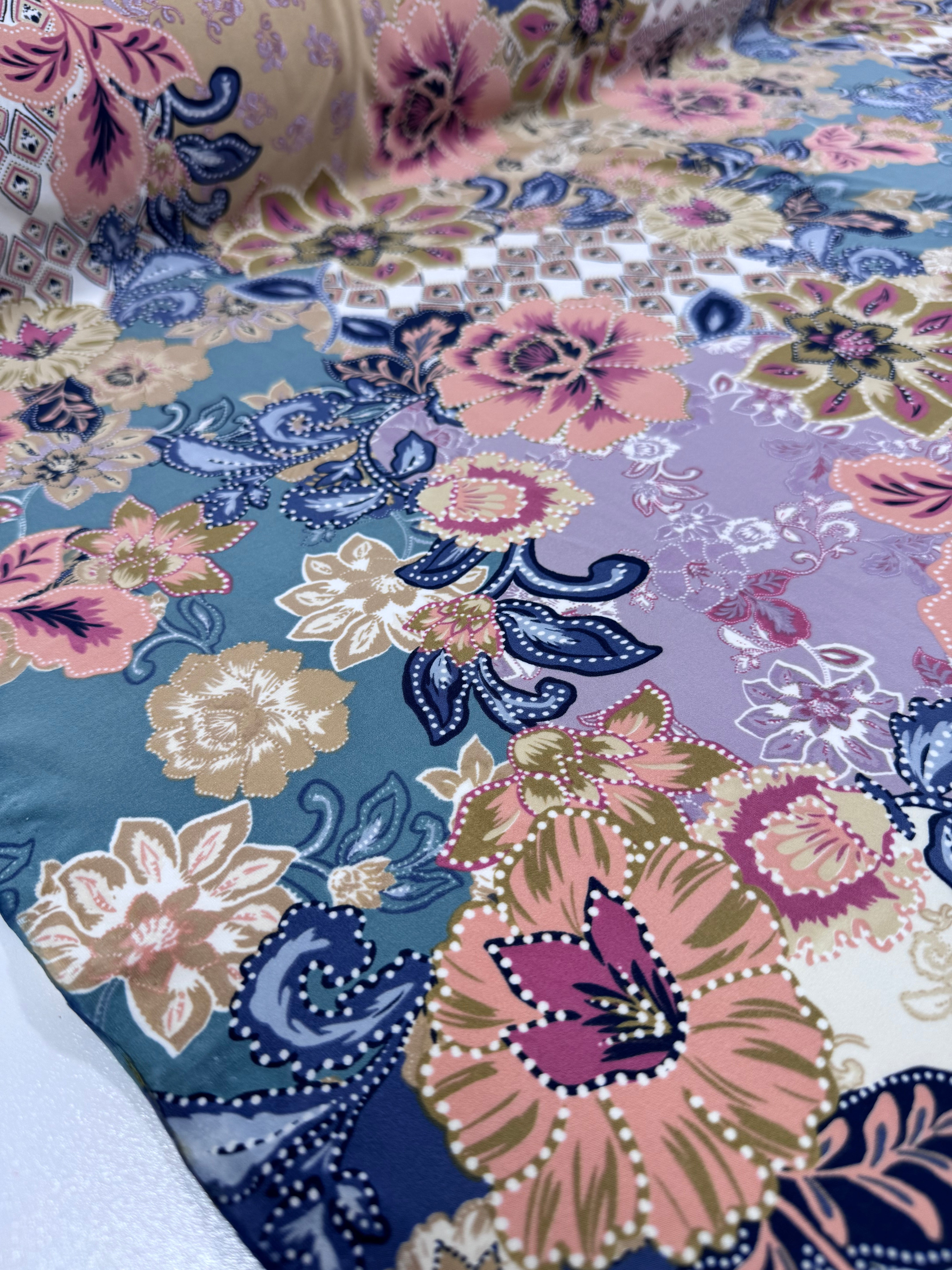 Our Printed Lycra is a Polyester/Spandex fabric that has a two-way stretch and comes in a variety of beautiful prints! Printed Lycra is a medium-weight fabric, has good durability and stretch, and washes well. Our Lycras are perfect for making tops, dresses, skirts, pants, accessories, and even childrenswear.