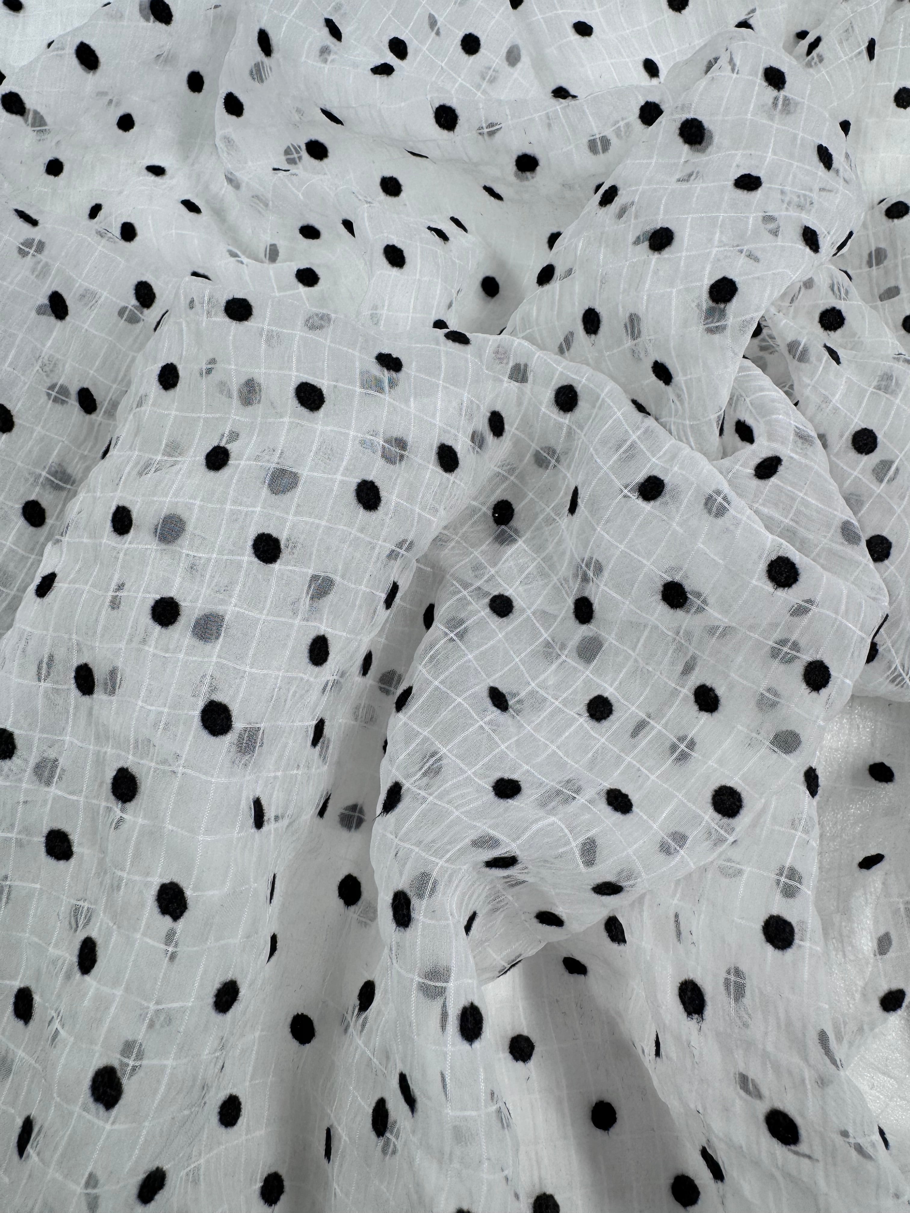 This Polyester Chiffon fabric is one of our bestsellers at Super Cheap Fabrics. Our lightweight chiffon material is semi-sheer and delicate. This fabric is perfect for an array of sewing projects: dresses, line sarees, wraps, overlays, blouses, kaftans, kimono-style outerwear, and scarves.