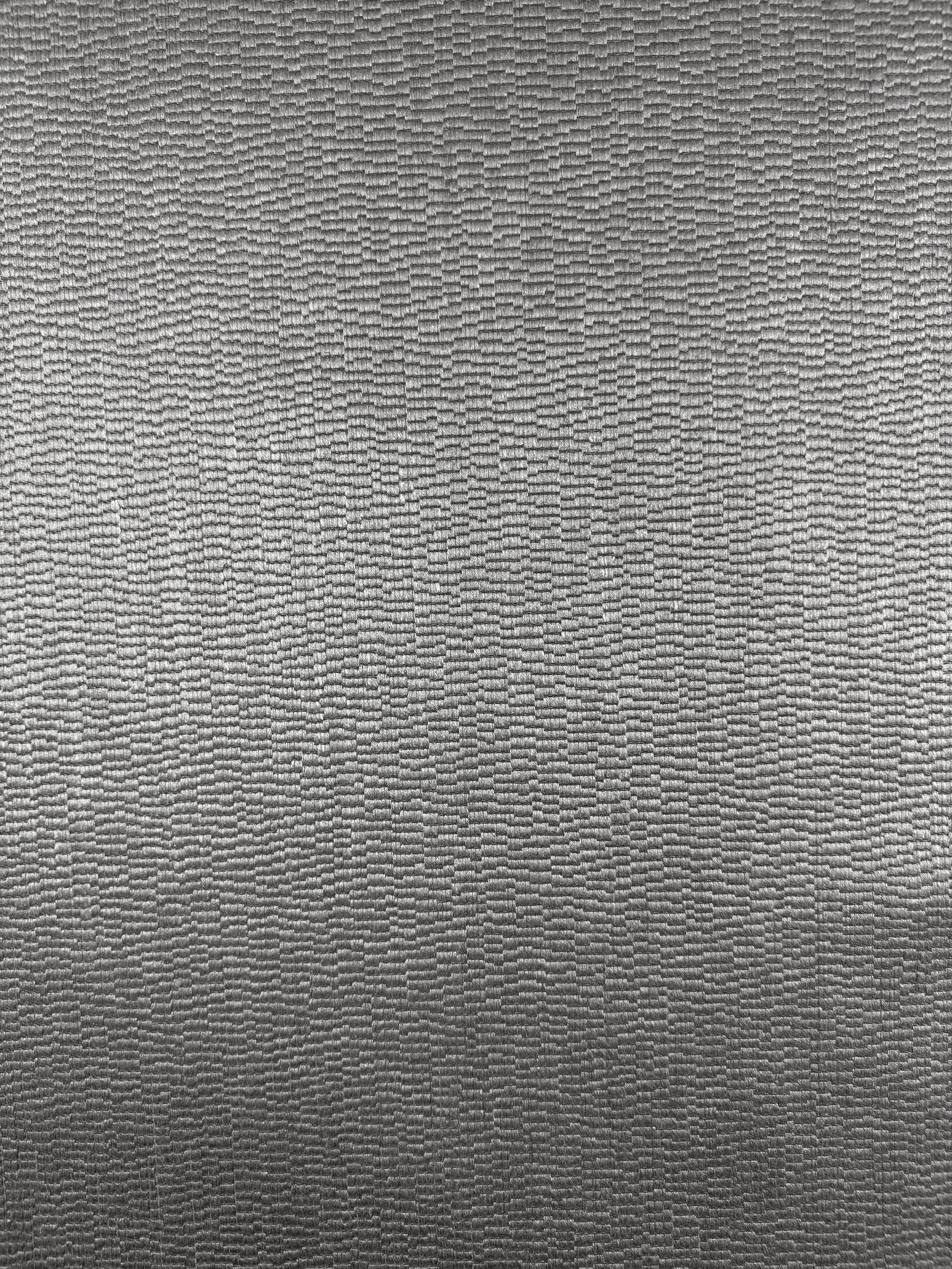 Close-up of Upholstery Jacquard - Oscar Putty (148cm) by Super Cheap Fabrics, featuring a metallic gray textured surface with a wavy rectangular pattern and a subtle sheen that highlights its heavyweight upholstery quality.